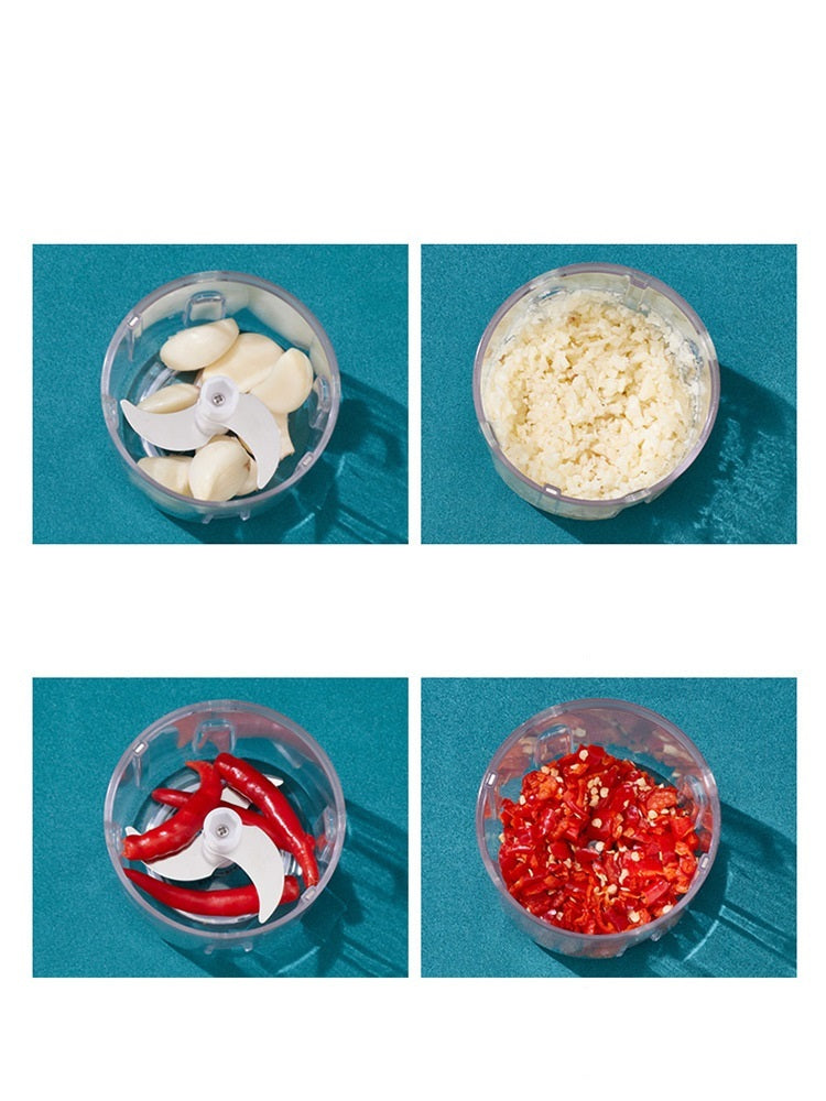 4. Facile da pulire: basta inserire manualmente il cibo o gli ingredienti nel mini robot da cucina, chiudere il coperchio e avviarlo con un solo pulsante, per tritare rapidamente il cibo. La ciotola e la lama possono essere separate per una facile pulizia. 5. L'utensile da cucina perfetto per aglio tritato, zenzero, peperoncino fresco, arachidi, carne macinata, salsa di zucca, ecc. È un must per gli appassionati di ricerca scientifica.