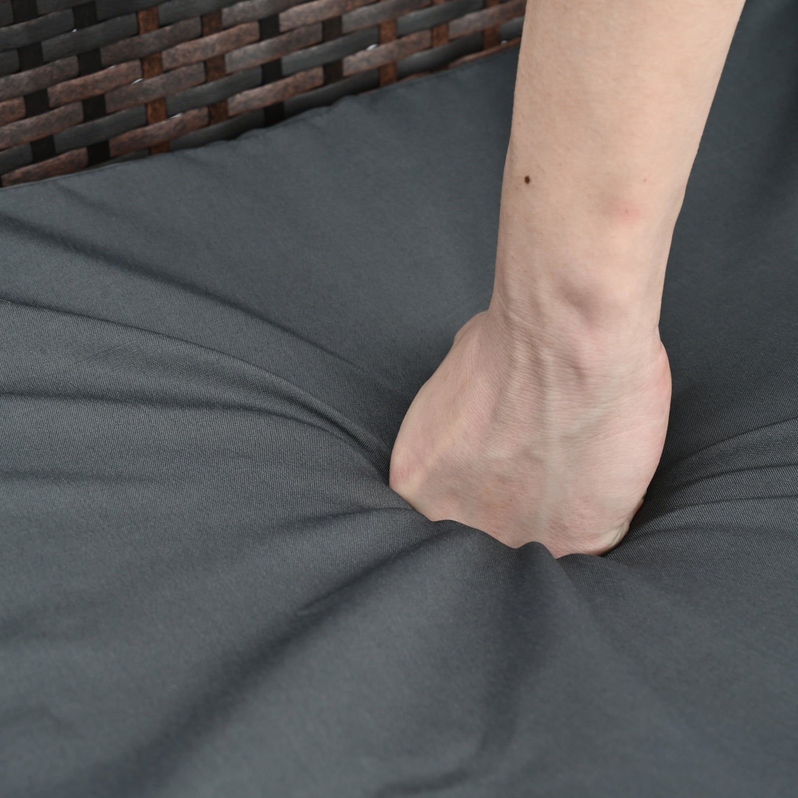 Realizzata in ferro verniciato a polvere, resiste alle intemperie e garantisce stabilità. Il rattan PE doppio filo è resistente ai raggi UV e all’usura, ideale per un uso esterno prolungato.